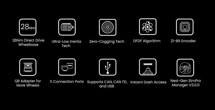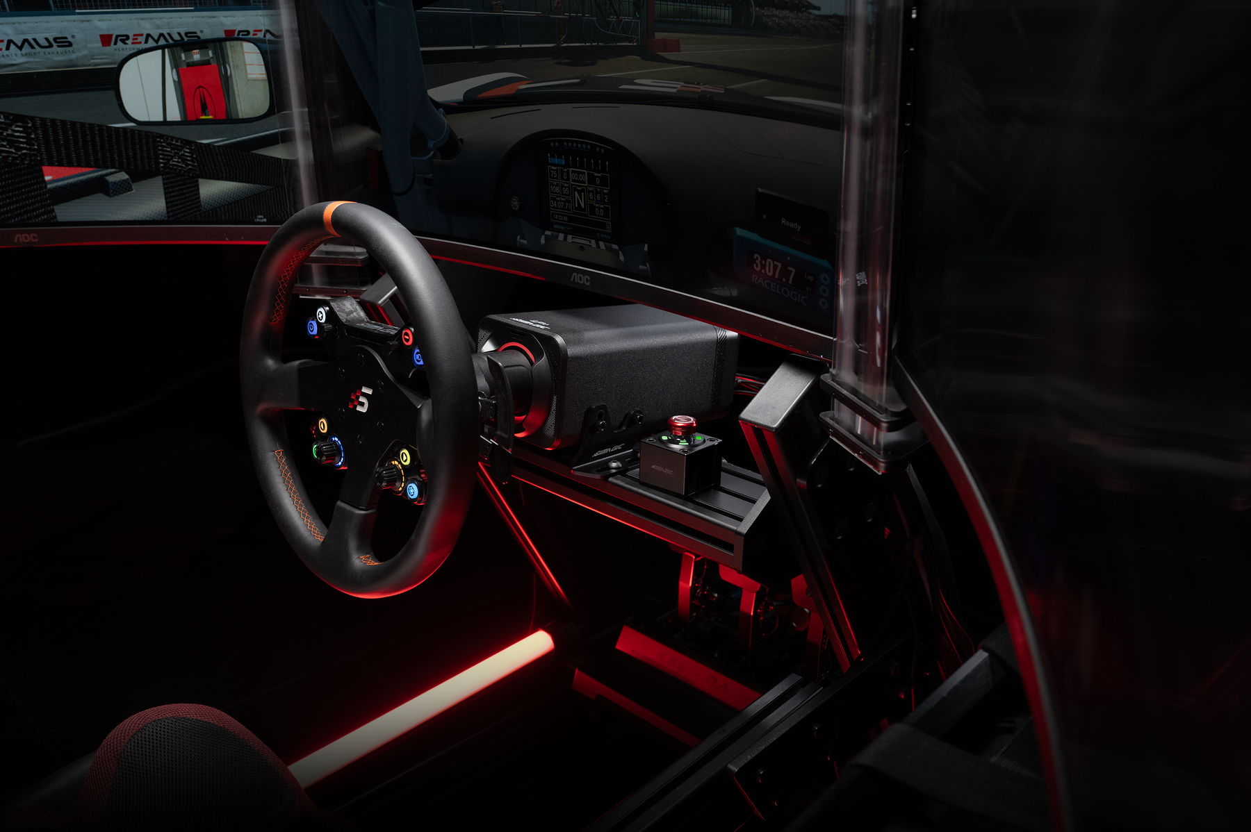 Der 28 Nm Direct Drive- Motor gibt jede Vibration des Asphalts, Gewichtsverlagerungen und Haftungsverluste des Fahrzeugs originalgetreu wieder und verbessert so die Kontrolle und Konstanz auf der Rennstrecke.