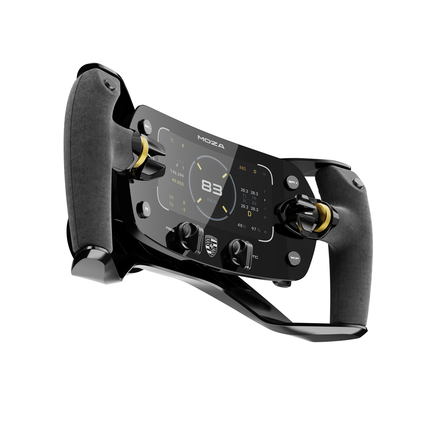 Tauchen Sie ein in die Welt des Sim-Racings – mit Porsche-Stil, Präzision und modernster Technologie. Das MOZA Porsche Mission R Lenkrad ist eine offiziell lizenzierte Nachbildung, die anhand originaler CAD-Daten entwickelt wurde, um ein authentisches Fahrerlebnis zu bieten, inspiriert vom bahnbrechenden elektrischen Hypercar Mission R. Sein flexibles 5,4-Zoll-OLED-Display, die hochwertigen Materialien und der integrierte Prozessor machen es zu einer der fortschrittlichsten und begehrtesten Optionen in der Welt des professionellen Sim-Racings.