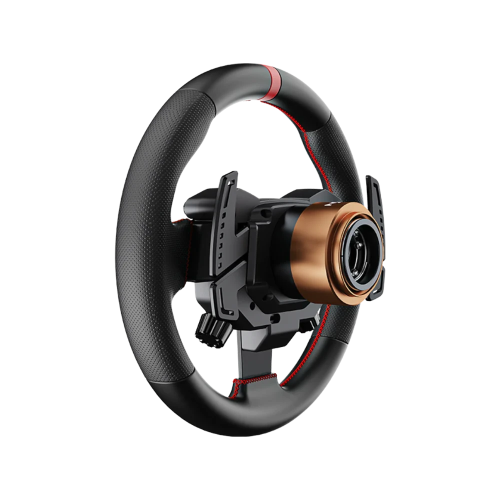Hall effect pedals offer consistent and wear-free response, while the wheel maintains an ideal size and ergonomics for long sessions.