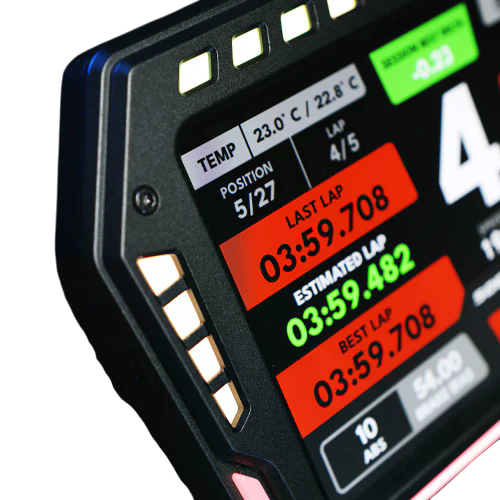The XR-7 was designed with the demands of modern sim racing in mind. Its fluid touchscreen and illuminated elements make every race a more intuitive and immersive experience. Configure your data in real time, view delta or RPM gauges, and quickly access essential simulator controls. This display not only enhances your performance but also your immersion and total control of the environment.