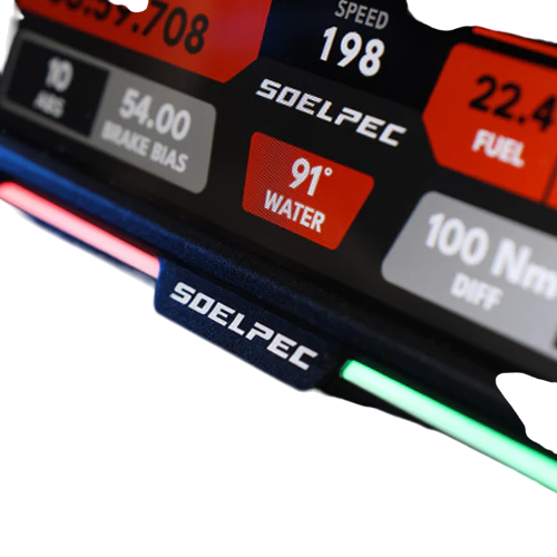 The SOELPEC XR-7 Display is much more than a screen: it's a precision tool designed for sim racers seeking the ultimate immersive experience. With an anodized aluminum frame, backlit buttons, and telemetry-configurable LED bars, this 6.8-inch display transforms your cockpit into a true command center. Compatible with SimHub , it includes an adjustable stand and USB-C connection for quick and versatile integration into any setup.