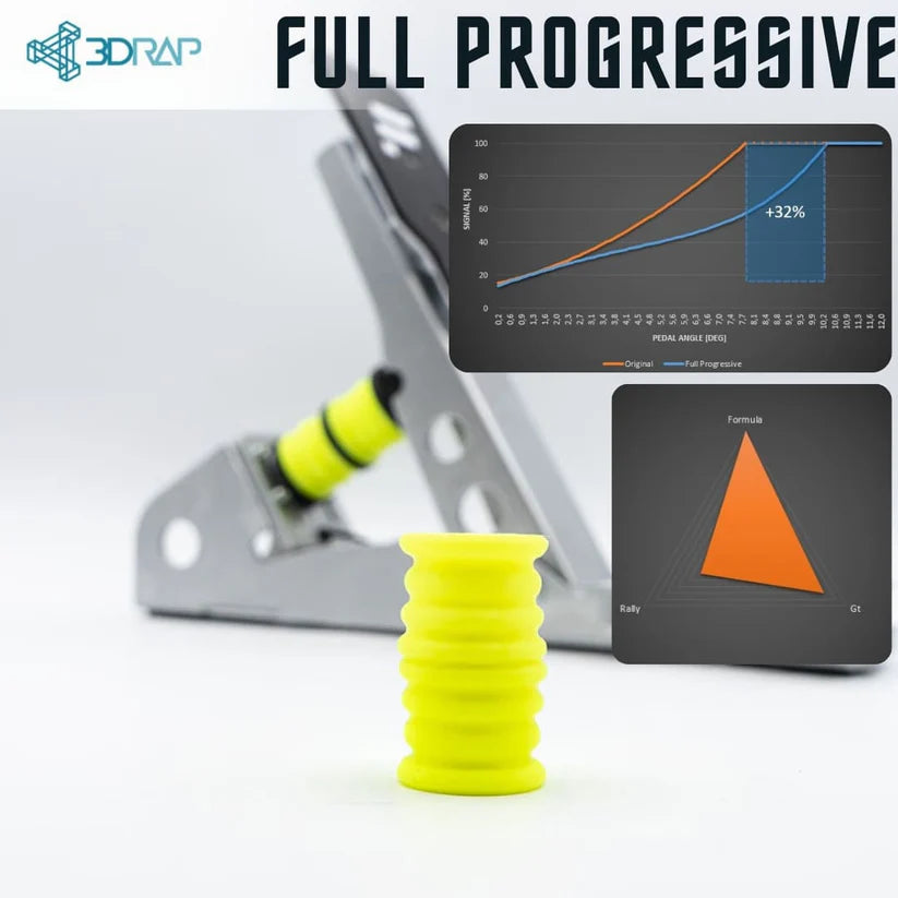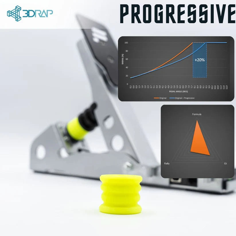 - Progressive (1 PROGRESSIVE elastomer): +20% travel, more resistance at the end of the pedal.