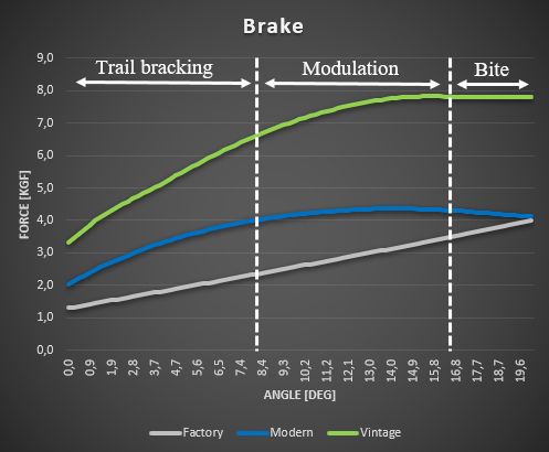 - Brake designed to simulate three key phases: initial bite, modulation and braking in curves ( trail braking ).