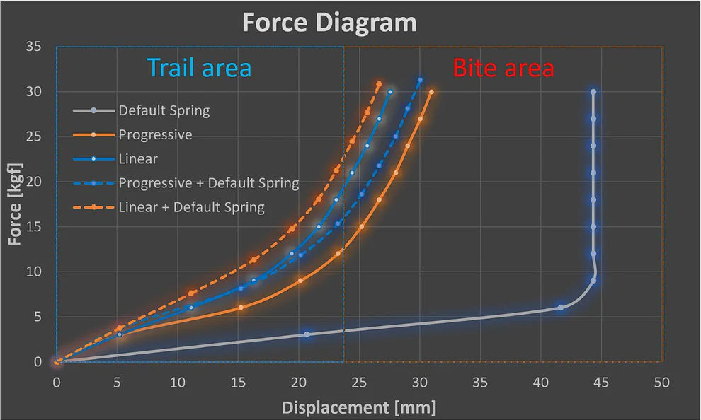 - Transition from linear to progressive behavior , adapted to the type of vehicle: