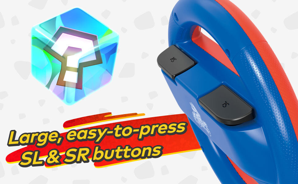 Simply place your Joy-Con (sold separately) inside the steering wheel and start racing. The ergonomic design and textured surfaces enhance control on curves, drifts, and straightaways, making every race feel more natural and fun, especially in Mario Kart World .