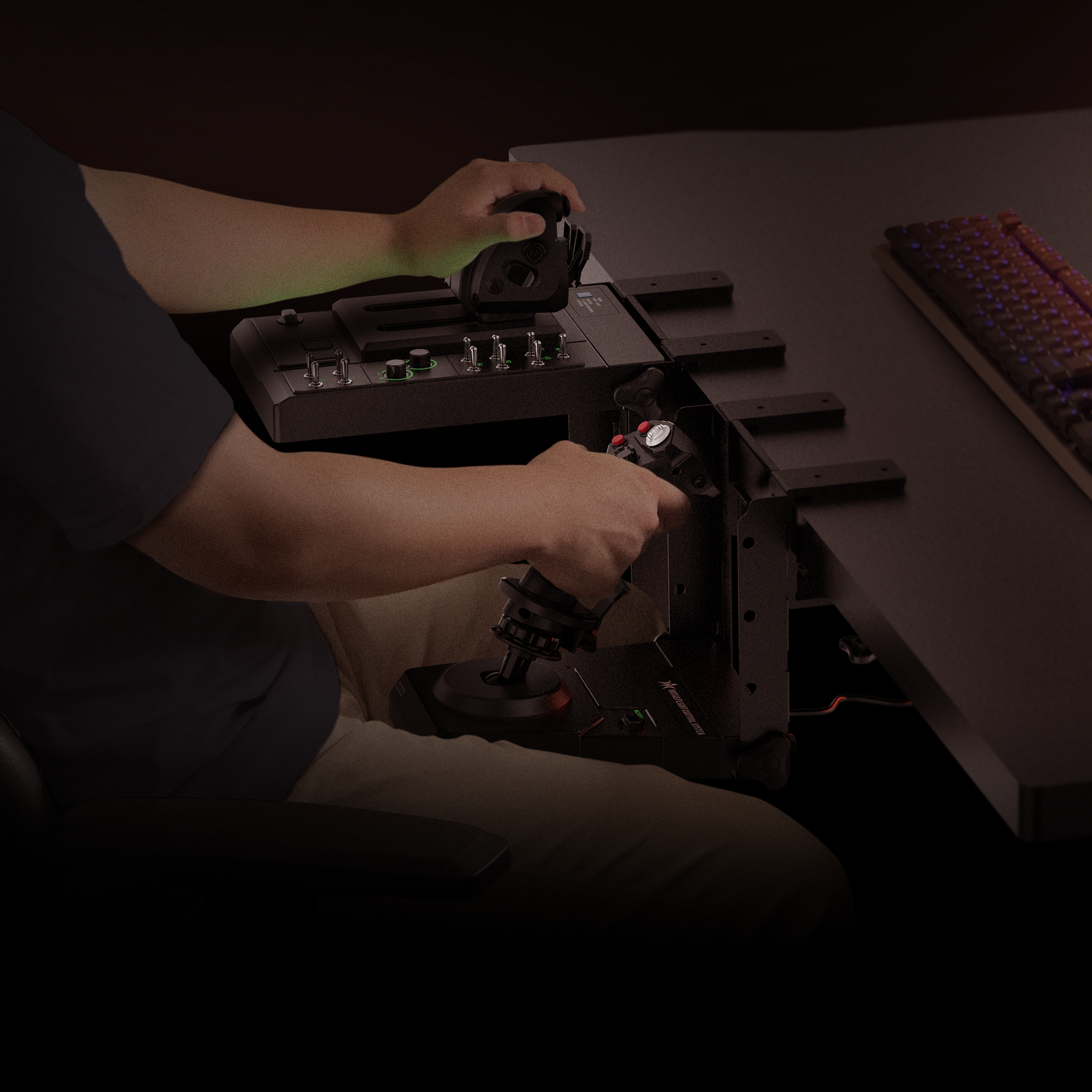 In flight, precision is non-negotiable. This system is designed for those who want to feel in control , not just "play" at flying: the fine joystick travel, the feel of the dual-stage trigger, and the thrust management with a configurable dual throttle provide a realistic piloting experience. And when you mount both modules on the steel stand, the posture changes: everything is where it should be, stable and accessible, for executing procedures and combat without improvisation.