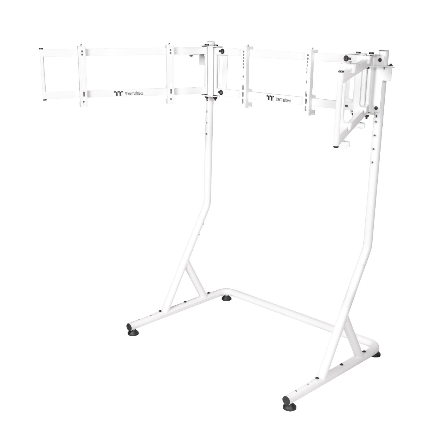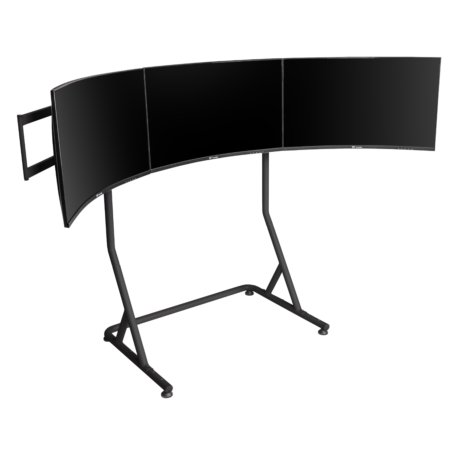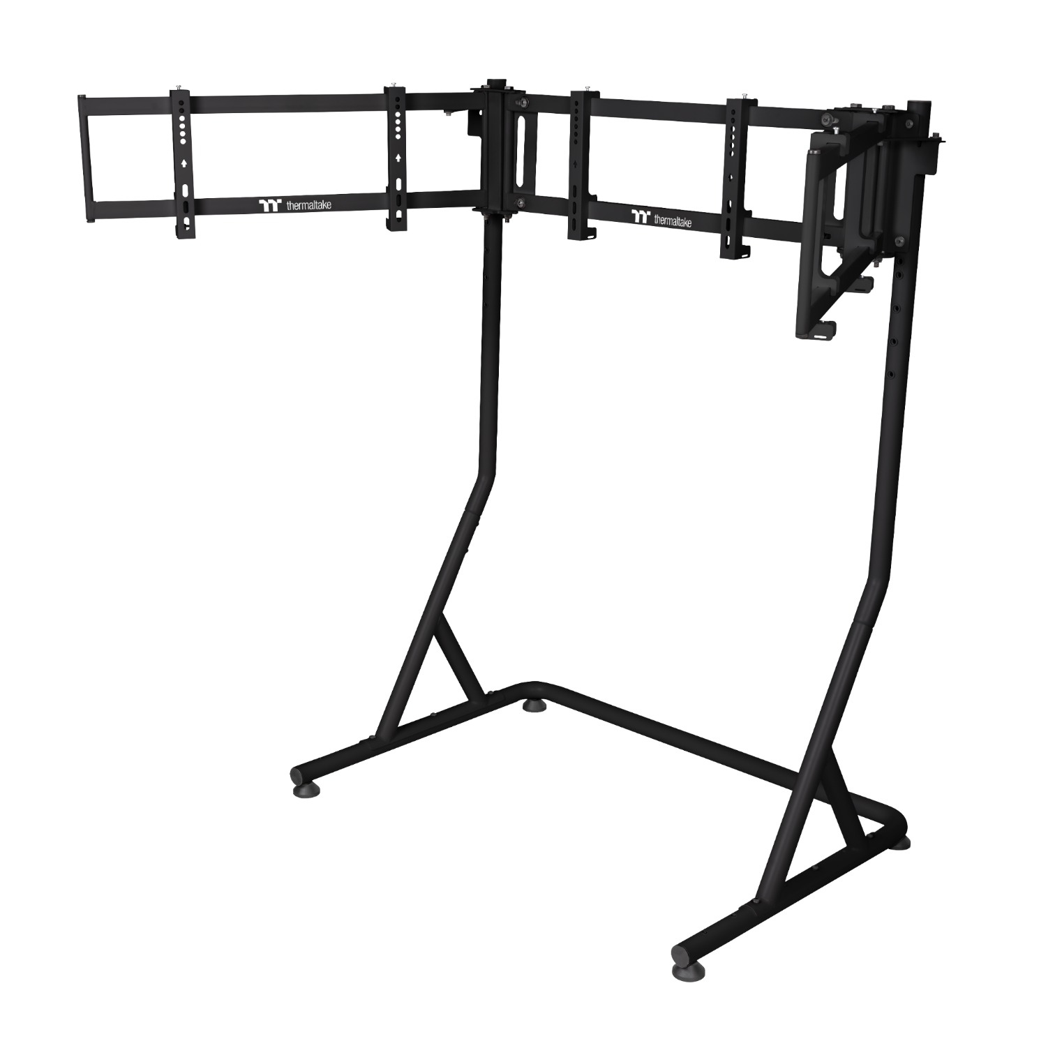 Take your racing simulator to the next level with the Thermaltake Triple Racing Monitor Stand Pro . Designed for sim racing enthusiasts seeking an immersive experience, this stand allows you to mount up to three large monitors, offering an ultra-realistic panoramic view. Its robust steel construction and textured finish make it an ideal piece for high-performance setups with a professional aesthetic.
