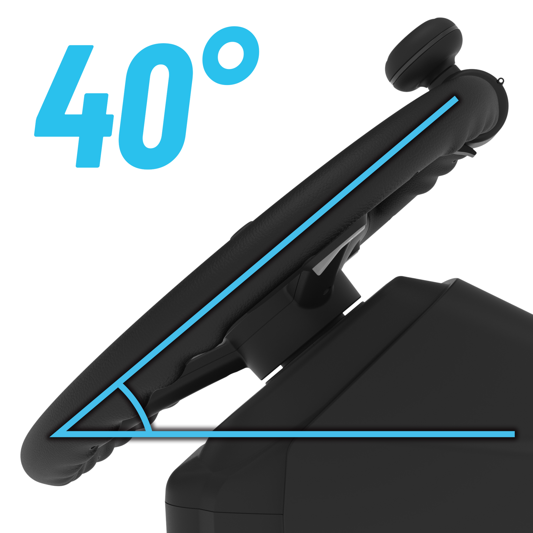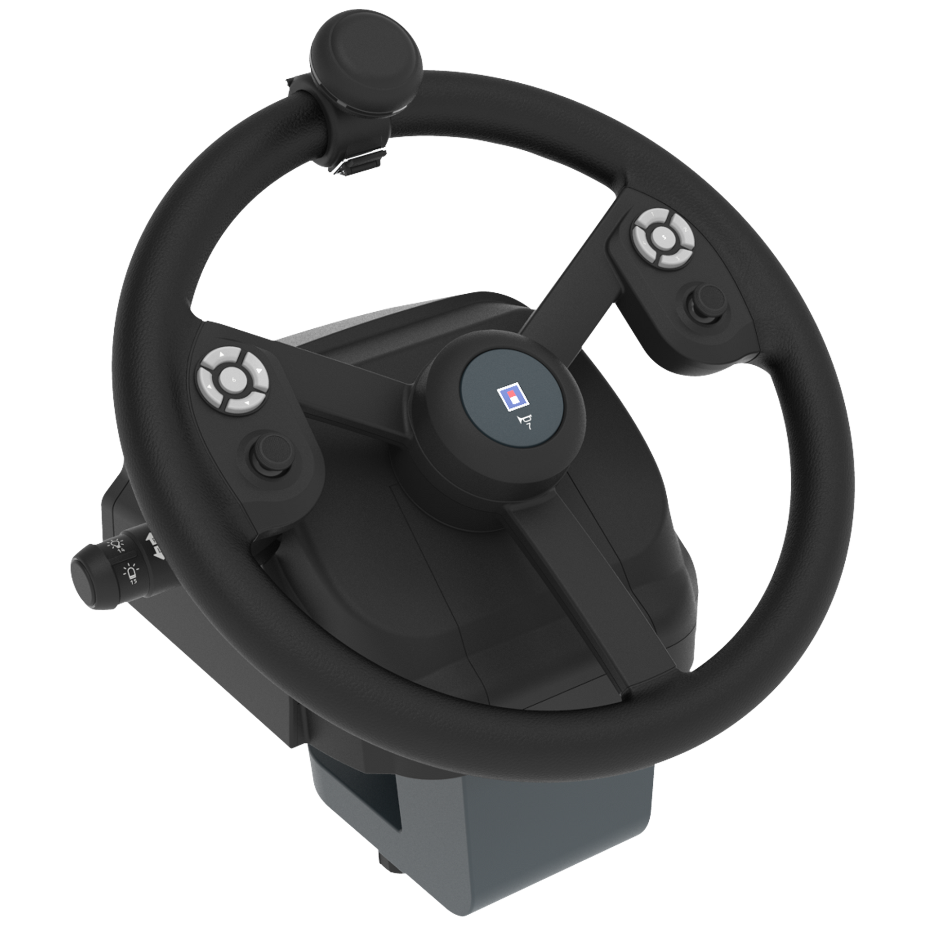 - Volante tipo tractor de 35 cm: Con giro de 900° y pomo giratorio desmontable para control con una sola mano.