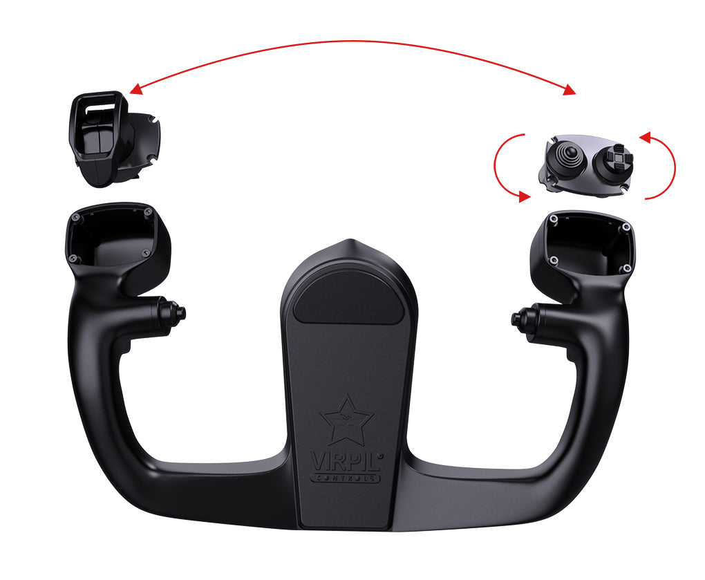 VIRPIL introduce los handles intercambiables para yokes, permitiendo cambiar entre diferentes estilos de empuñadura en segundos, sin herramientas y manteniendo una conexión firme y segura con la base del yoke.