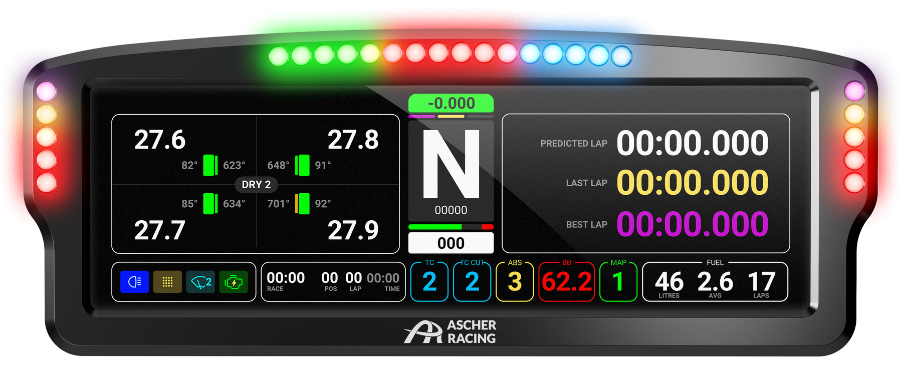 Ascher Racing 8” Dashboard – Máxima Visibilidad y Datos en Tiempo Real para Simracing Profesional