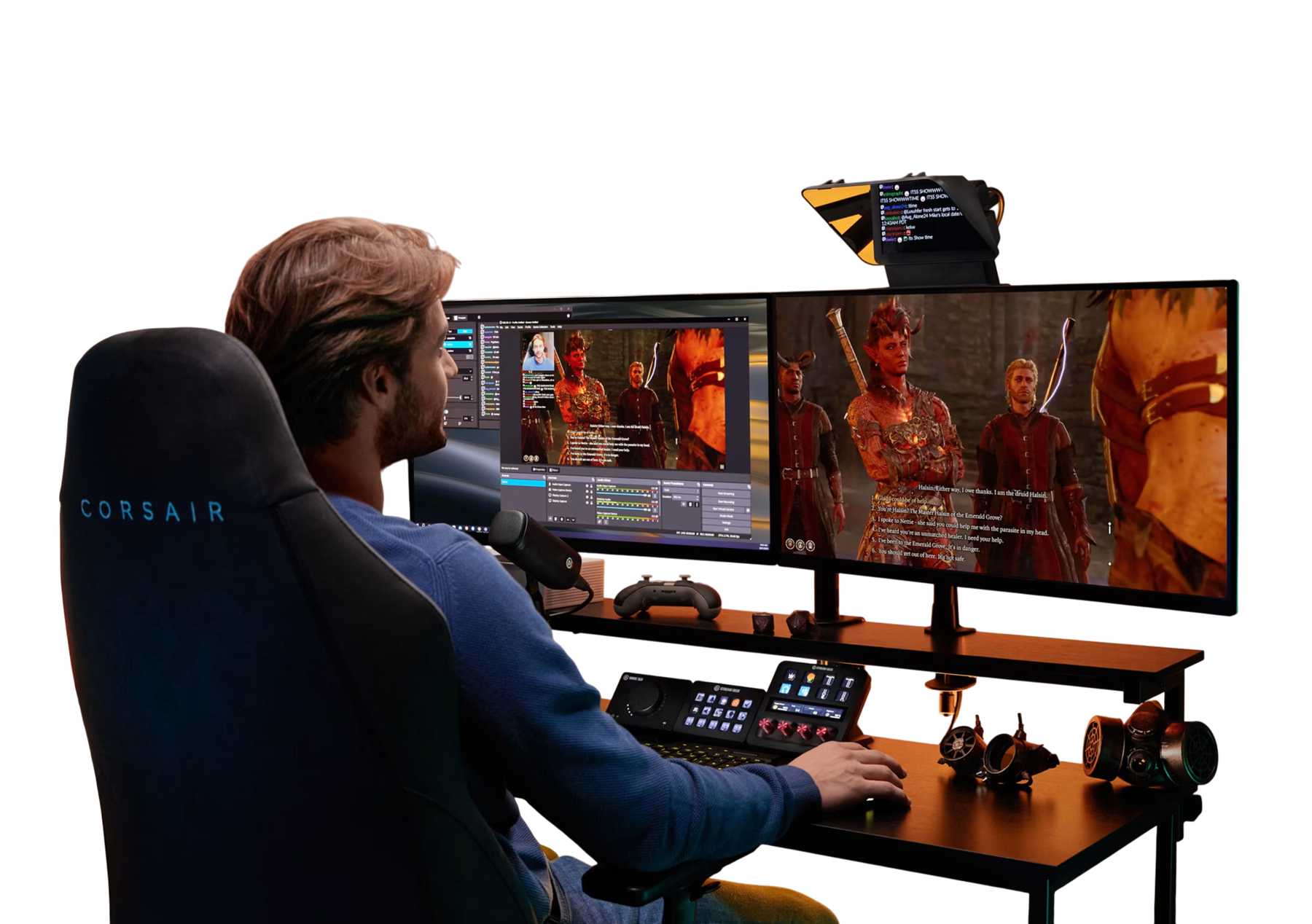 Haz que cada palabra cuente con el Elgato Prompter, el primer teleprompter de su tipo diseñado específicamente para creadores de contenido, streamers y videógrafos. Gracias a su pantalla integrada y su compatibilidad con una amplia variedad de cámaras y software, permite mantener el contacto visual natural con tu audiencia mientras lees guiones, mensajes del chat o cualquier contenido reflejado en tiempo real.