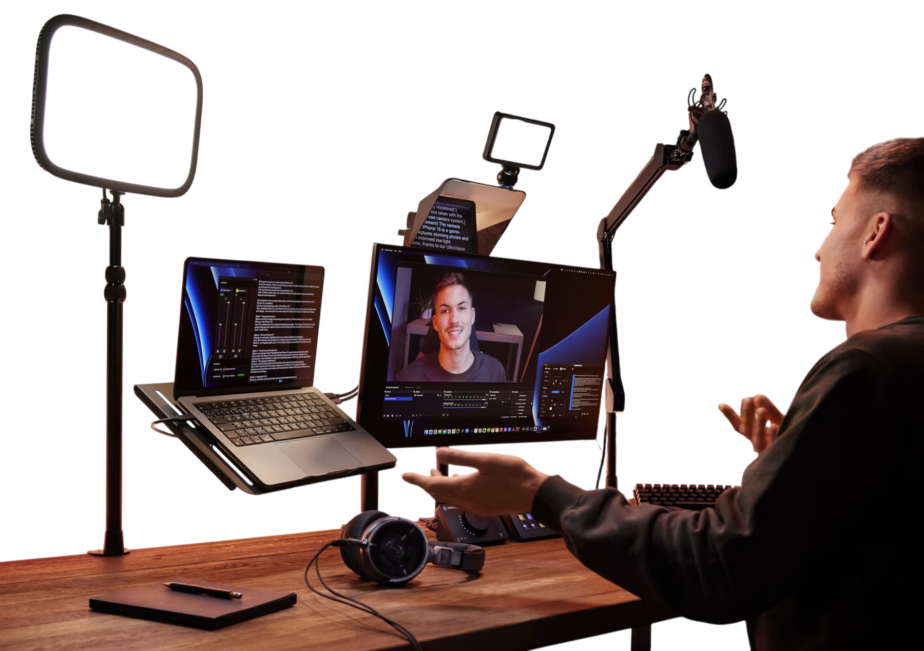 - Contacto visual natural: Conecta auténticamente con tu audiencia sin apartar la mirada de la cámara.