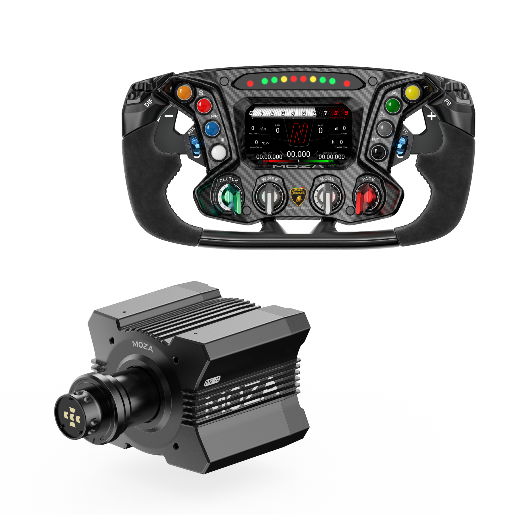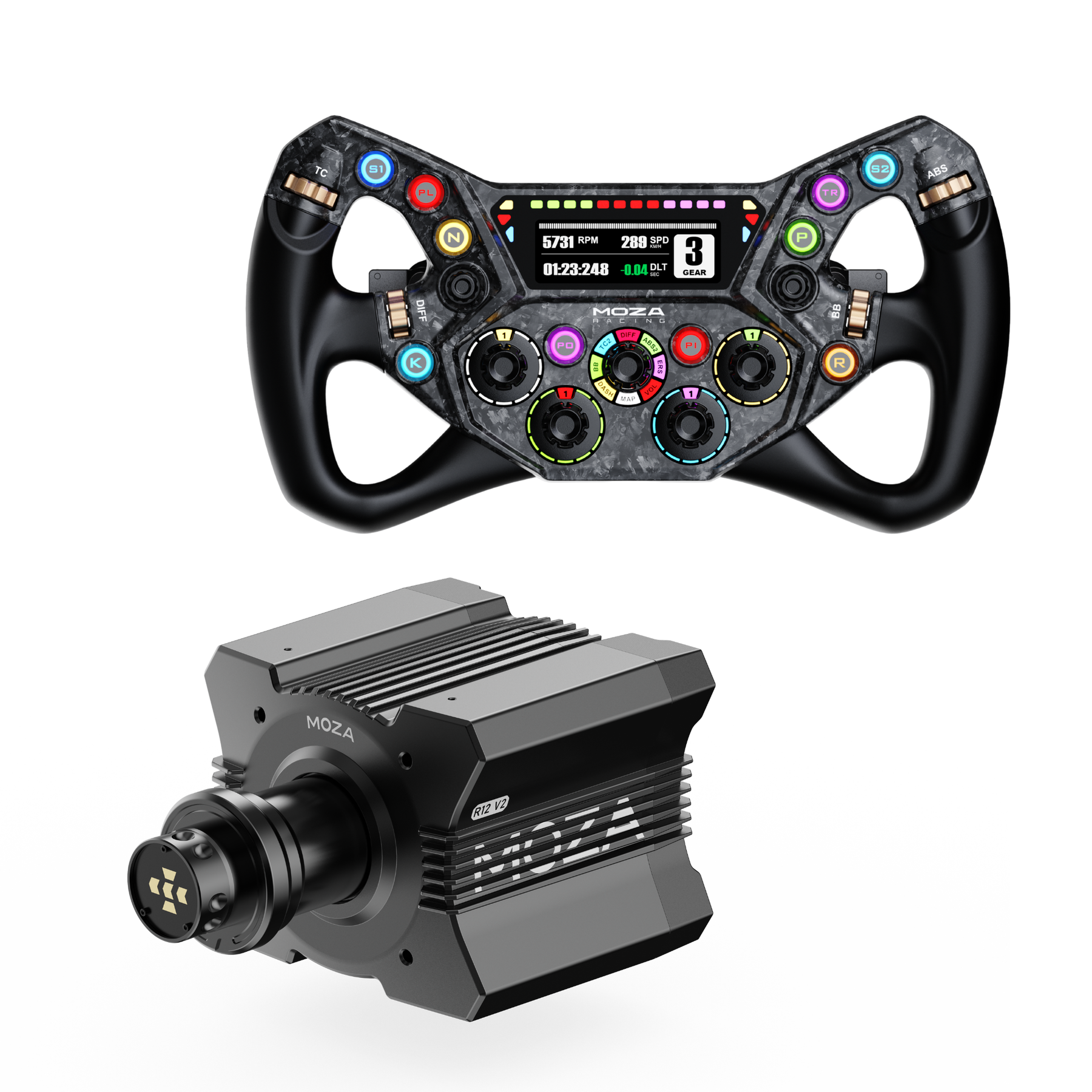 - Base de Transmissão Direta R12 V2 (12 Nm): Experimente uma experiência de direção mais rica e detalhada graças ao seu servomotor de alto torque, que proporciona uma resposta potente, linear e fluida em toda a faixa de potência.
