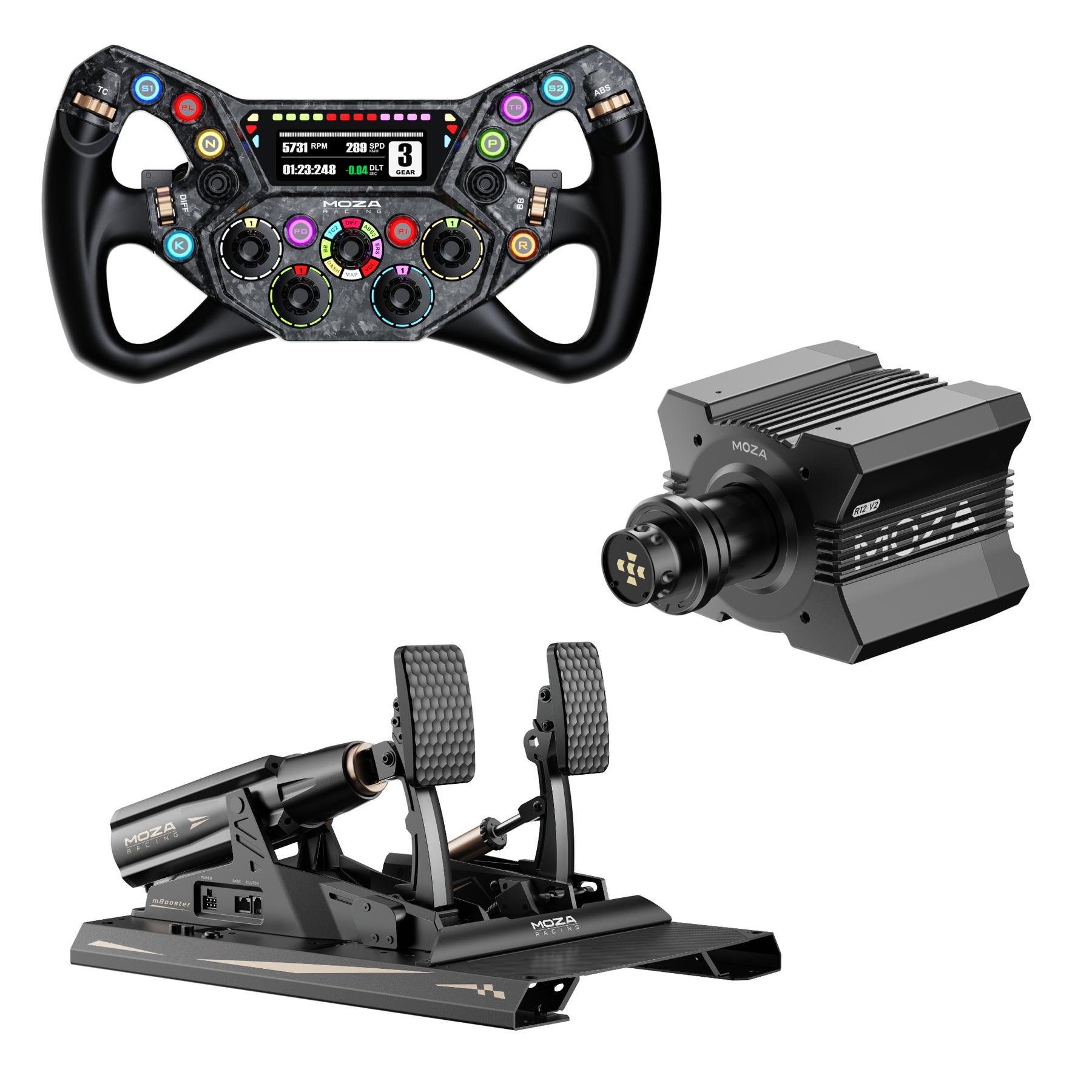 - Compatibilidade total: Funciona perfeitamente com o ecossistema MOZA Racing e os principais títulos, como iRacing, Assetto Corsa Competizione, rFactor 2, F1 25, Dirt Rally e muitos outros, tudo para PC.